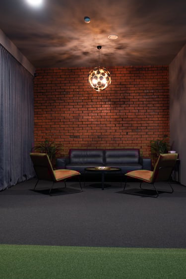 Apvienojot telpas mūsu golfa studijas kopējā platība pasākumiem ir 80m2, kuros ērti jutīsies kompānijas līdz 20 cilvēkiem. Studijas aprīkojums ļauj ne tikai izmantot golfa simulatoru, bet arī demonstrēt dažādas prezentācijas klientiem, atskaņot video saturu uz mūsu lielizmēra ekrāna un saglabāt golfa spēli kā papildus izklaidi jūsu pasākumā!
